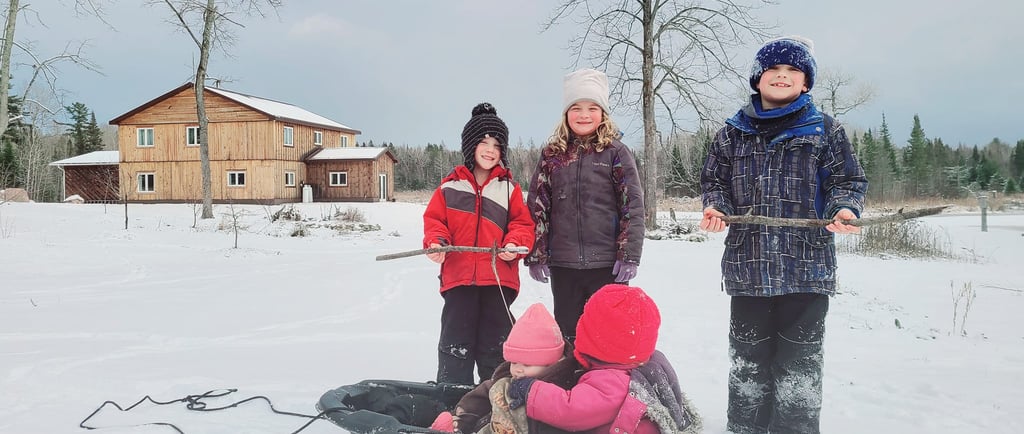 Thirteen years ago, Ed and I tied the knot and settled in Fort McMurray, AB. However, city life just wasn't for us. Fortunately, Ed's dad inherited a beautiful piece of property right next to Ed's childhood home, where his family still resides. He generously gifted us 154 acres of land, but it was almost completely untouched wooded land, with only a trail at the time. We rolled up our sleeves to clear the land and construct our dream off-grid home. Utilizing the trees from the property, we made lumber with a bandsaw, and Ed, alongside his dad, built our house and a wood shed. Living here has been incredible, and we've taken on numerous projects, including building a chicken coop, a root cellar, various sheds, a small greenhouse, and establishing a 7,000 sq/ft garden that we continually improve. This place truly feels like home.