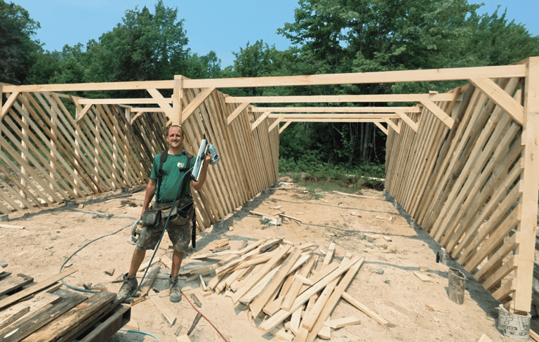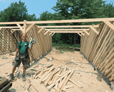 When Ed was a little boy, it was his chore to trek out to the wood shed at the family home, fill a wagon with wood and pull with all his might to the wood door and throw the wood in the basement. As he got older, this job got easier, he even used a snowmobile to do it eventually. But he will never forget going out in the dark by himself to fill up that little wagon. So he knew when he built his wood shed he wanted it to be AS CLOSE AS POSSIBLE to the house. So our sons could easily bring in wood as a chore, without much trouble. So we built a 3 bay woodshed directly behind the house, we have a nice cement walk way in between the rows of wood, and the house, that is covered by the roof of the woodshed. 2 of the wood shed bays are used to house firewood for heating our home in the winter, plus we sell firewood as well. And the other bay houses shelving for outside tools and an area for our snowmobiles in the winter, and four wheeler and boat in the summer.