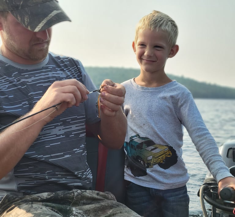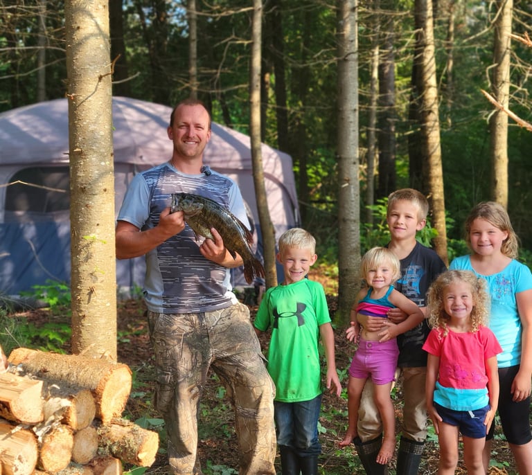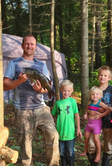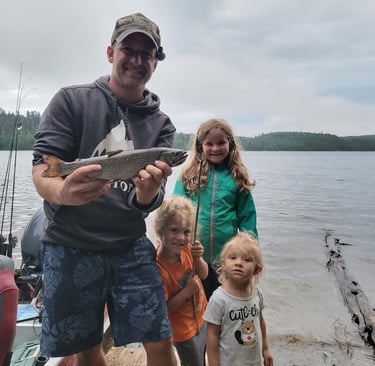 As the rain softened, we set up our tents and made ourselves at home. What started as a mid-summer camping trip quickly evolved into an exciting adventure filled with laughter and unforgettable moments with the kids. We spent our days splashing in the water, catching great fish and exploring the surrounding woods.